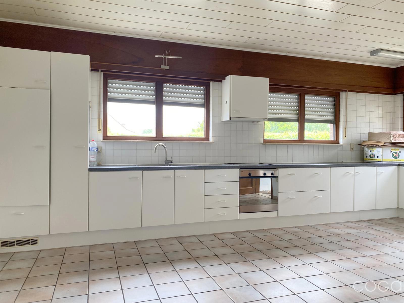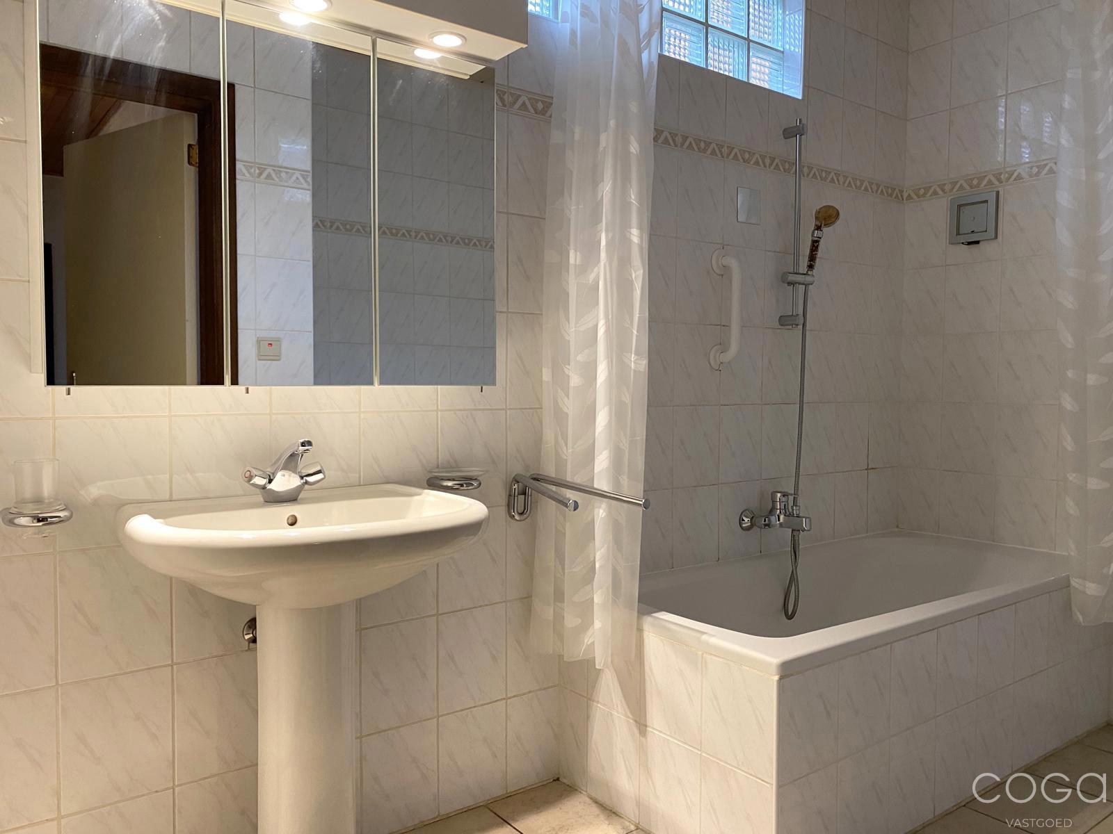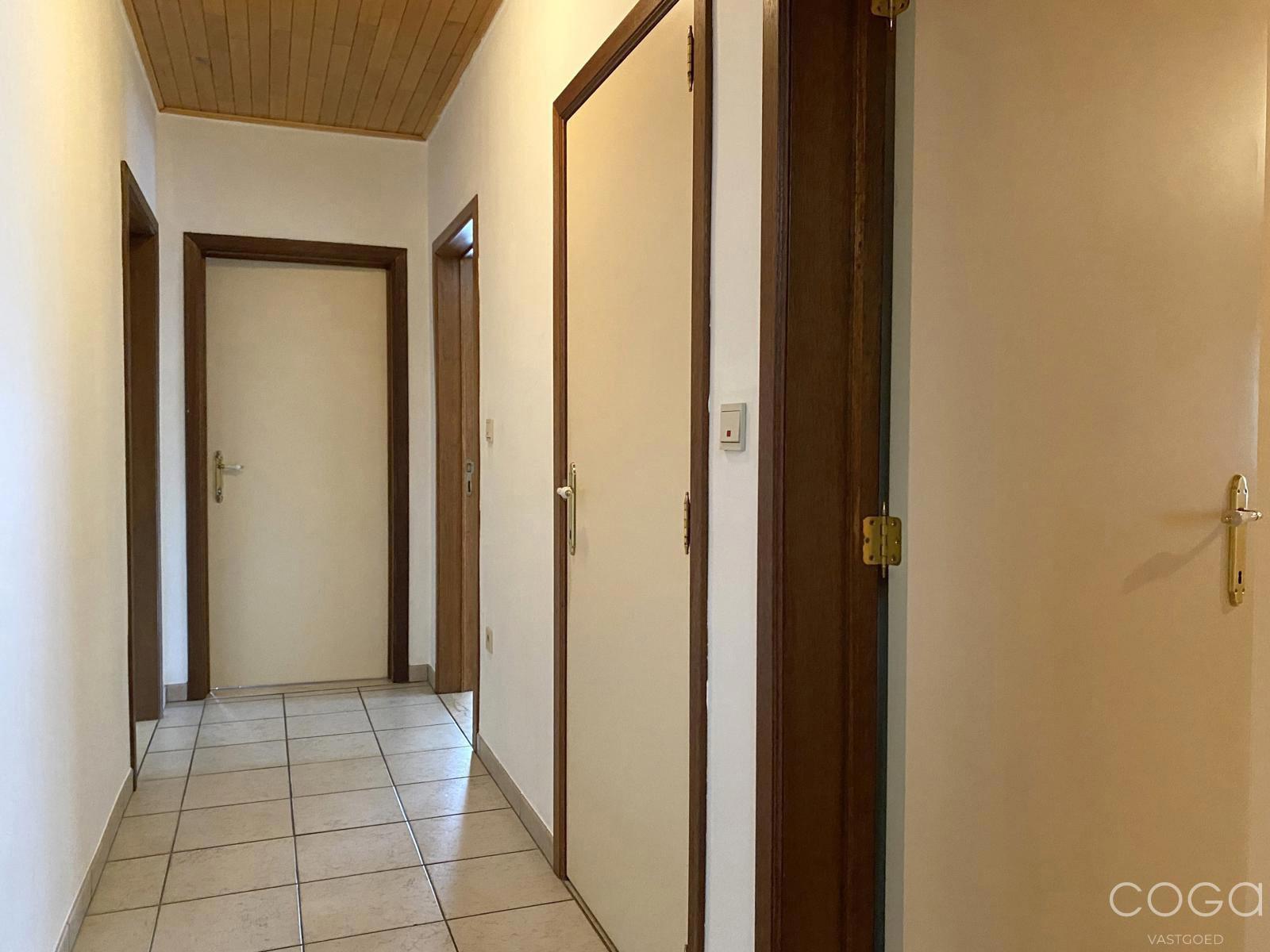 Private inkomhal, ruime woonkamer, leefkeuken ingericht met keramische kookplaat, dampkap, spoeltafel en oven. Achterinkom met cv-installatie (op gas). Vanuit de woonkamer kom je in de nachthal met toegang tot het apart toilet, een bergruimte, 2 ruime slaapkamers en een badkamer met wastafel in meubel en combinatie ligbad/douche.