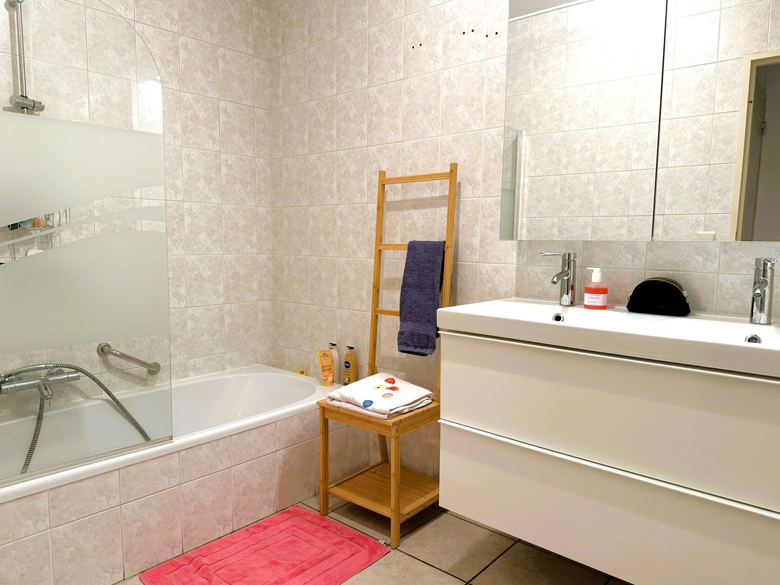Het appartement beschikt over twee slaapkamers beide op een laminaatvloer. De badkamer is uitgerust met een ligbad/douchecombinatie, een dubbele wastafel in meubel en een apart toilet.