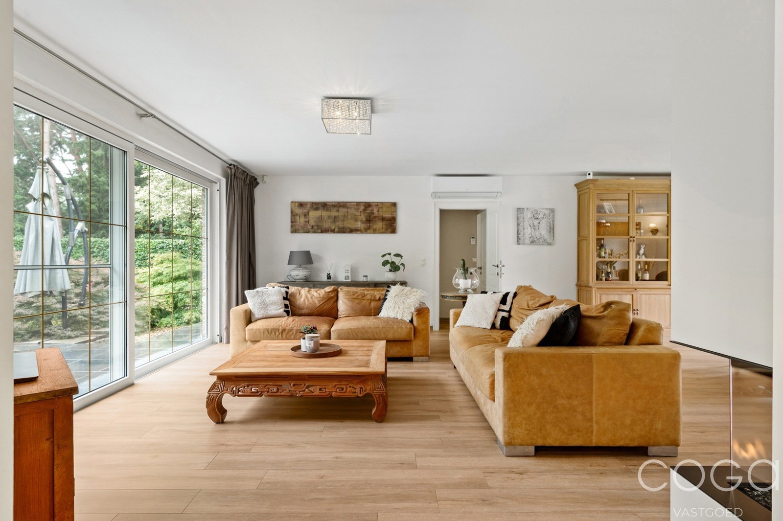 In de woonkamer werd onlangs nog een airco geplaatst (warmtepomp lucht/lucht) waarmee je zowel kan koelen als verwarmen.