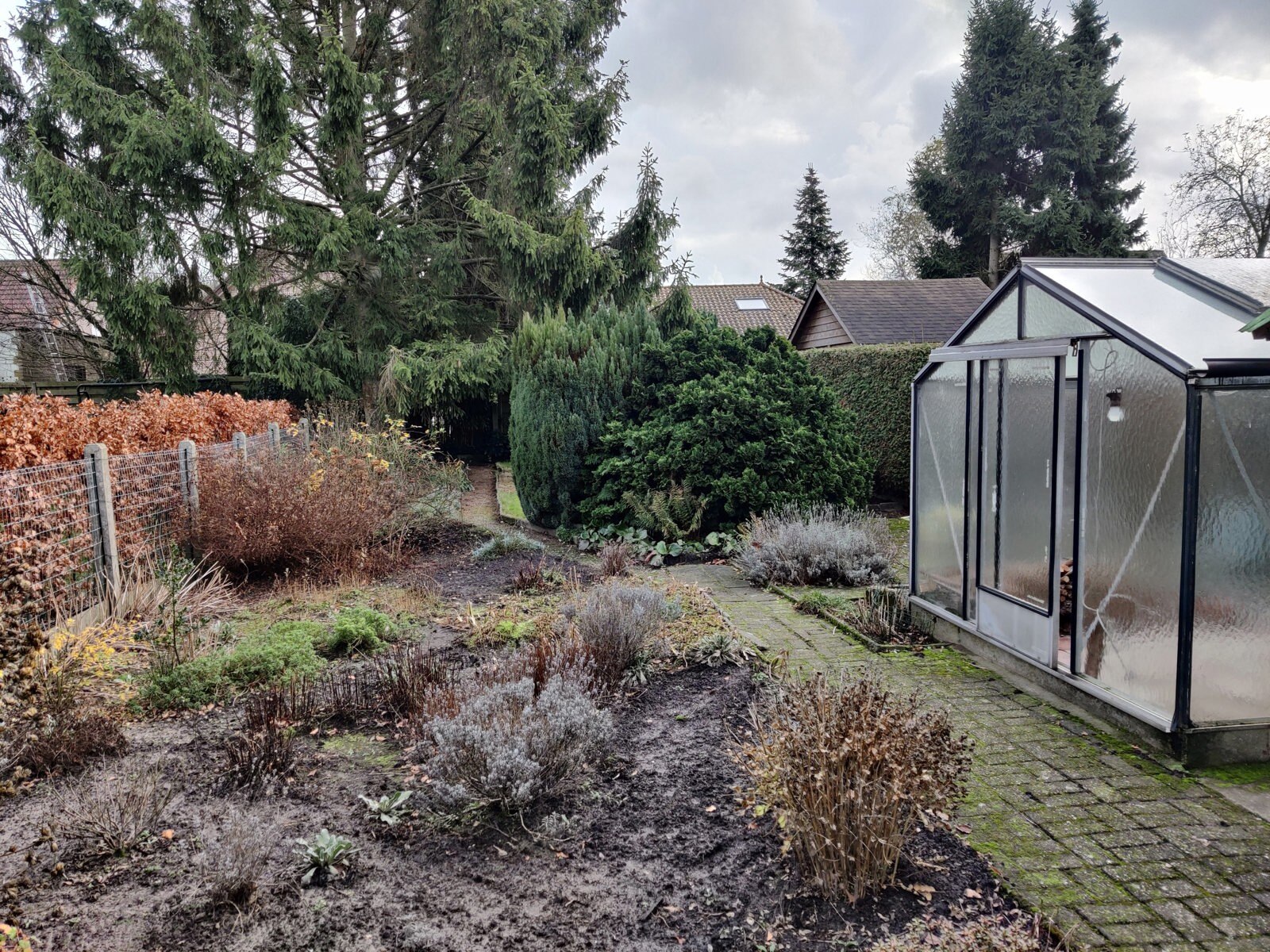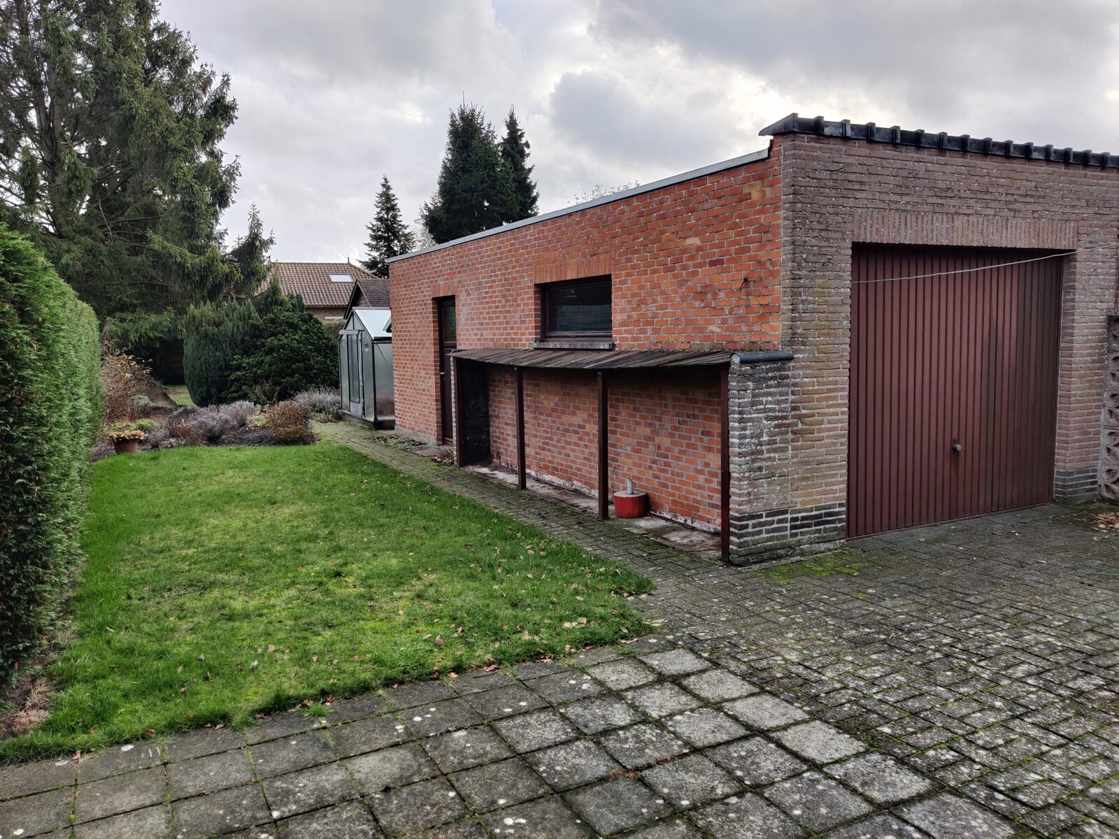 Naast de woning een oprit naar de vrijstaande garage met aansluitend een aparte berging. Achter de garage een serre en tuinstrook. De tuin en het terras hebben een ZUID oriëntatie zodat je de ganse dag van de zon kan genieten. De oprit naast de woning heeft plaats voor meerdere wagens.